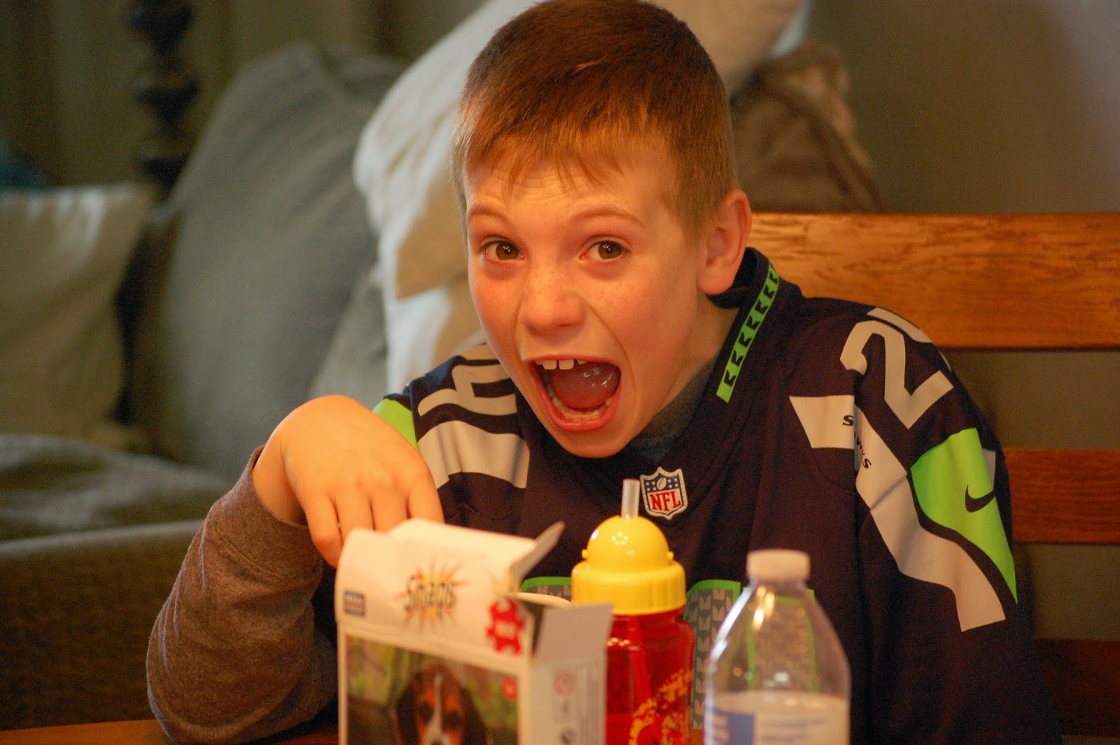 And since it was blue Friday we needed an appropriate picture. Thanks to Grandpa and Grandma for a Seahawks outfitted crew.